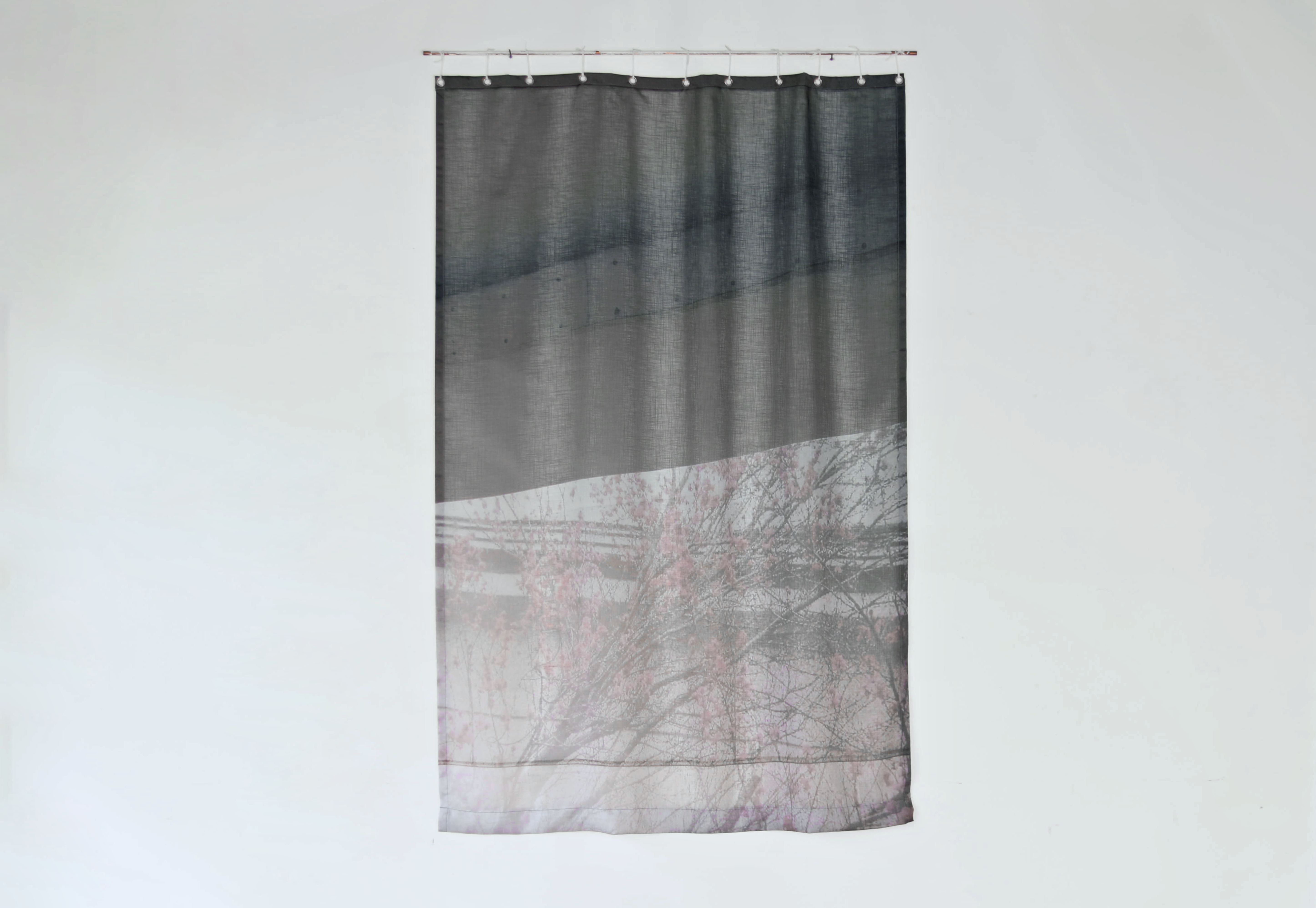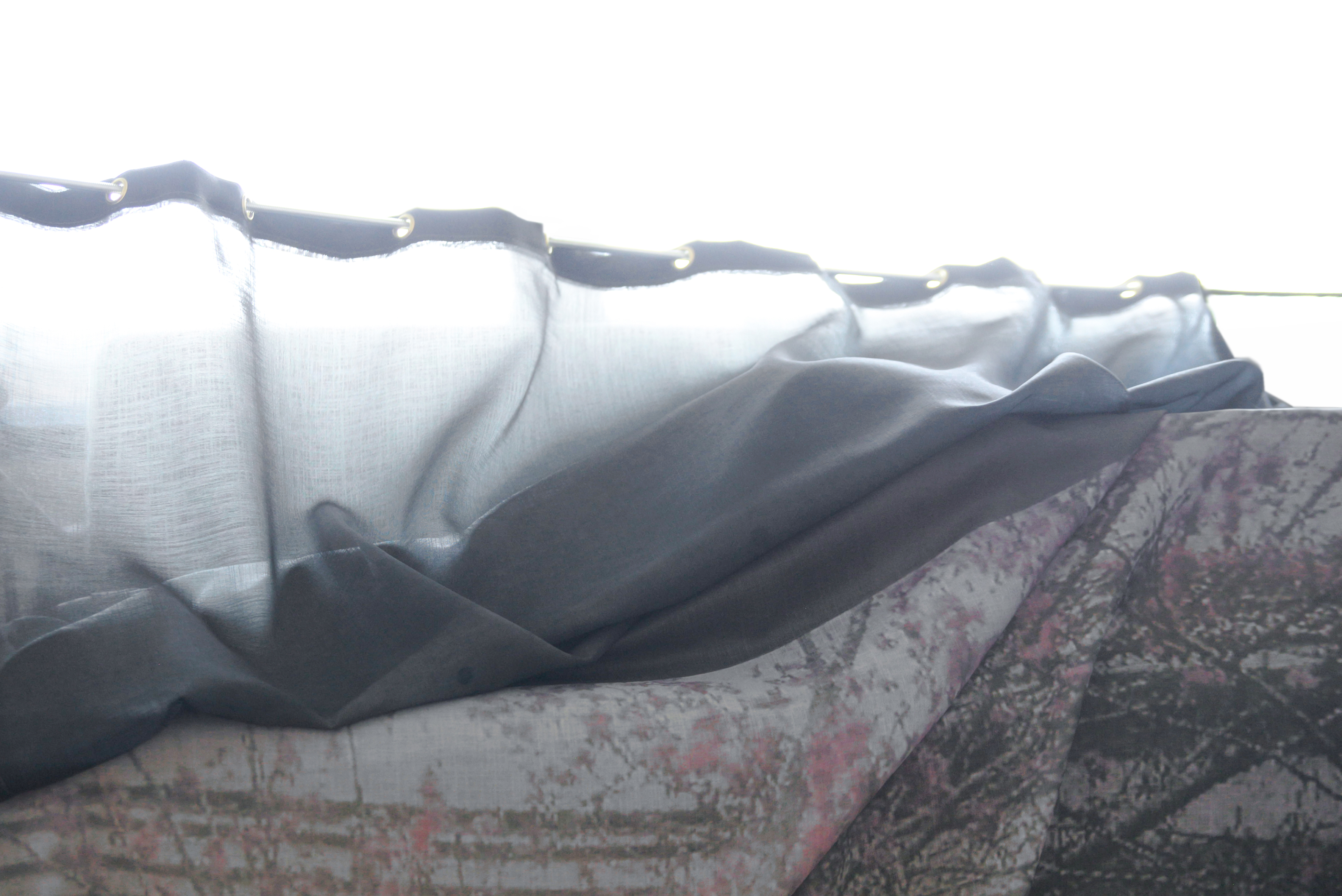Vincent Roumagnac – La Cerisaie / 2019 / Print on sheer chiffon – eyelets – 180x120cm – Unique / 200 euros